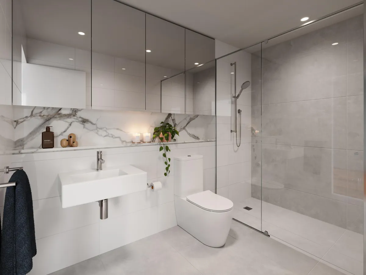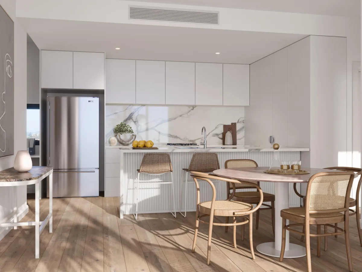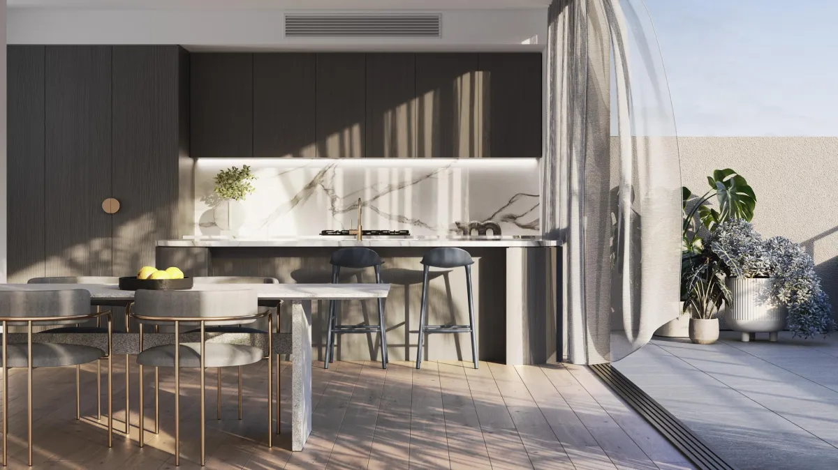 Wide glazing, calm interiors, hybrid timber floors and ducted A/C for everyday comfort.